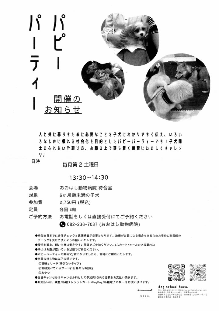 また、12月のパピーパーティーは13日(土)の開催となります。